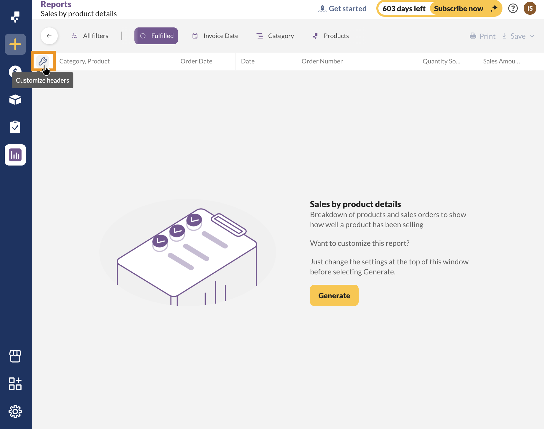 - Go to Main Menu > Reports> then select a report category, and open a report.