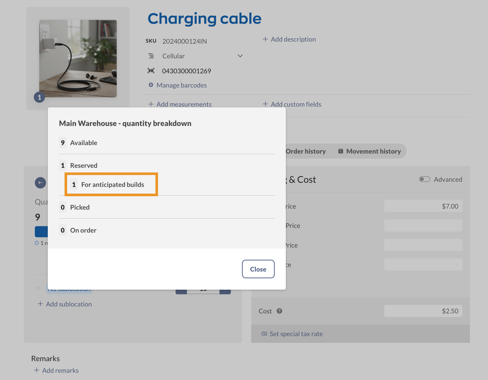 Click on the ellipsis (…) next to Reserved to see where your product is reserved.