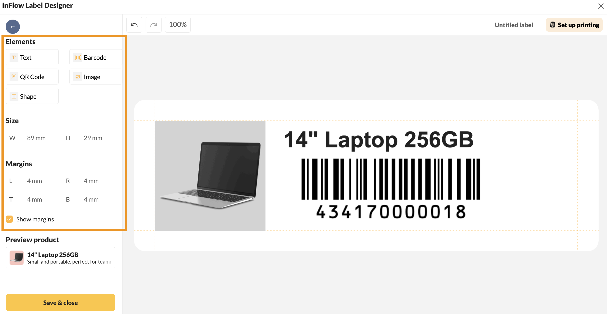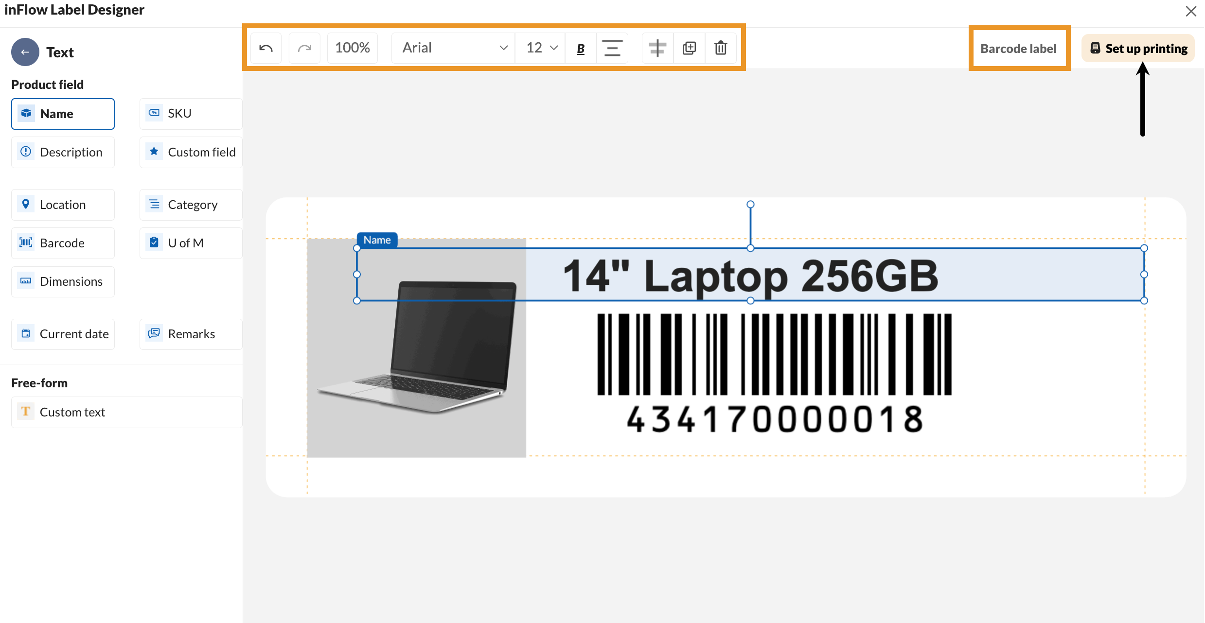 - Continuing from the inFlow Label Designer, click Set up printing.