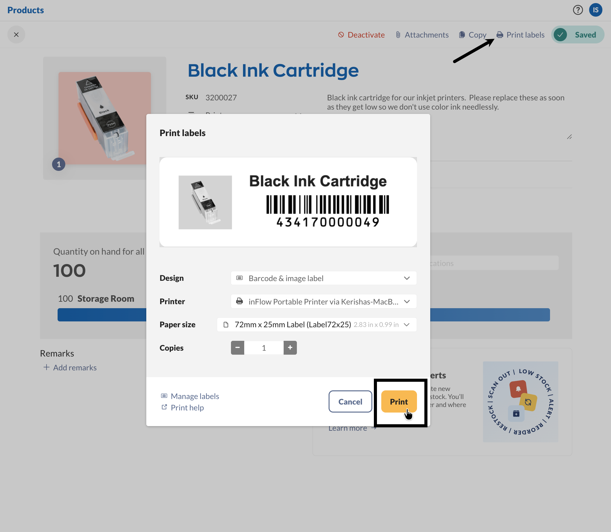 Creating & printing labels in Stockroom