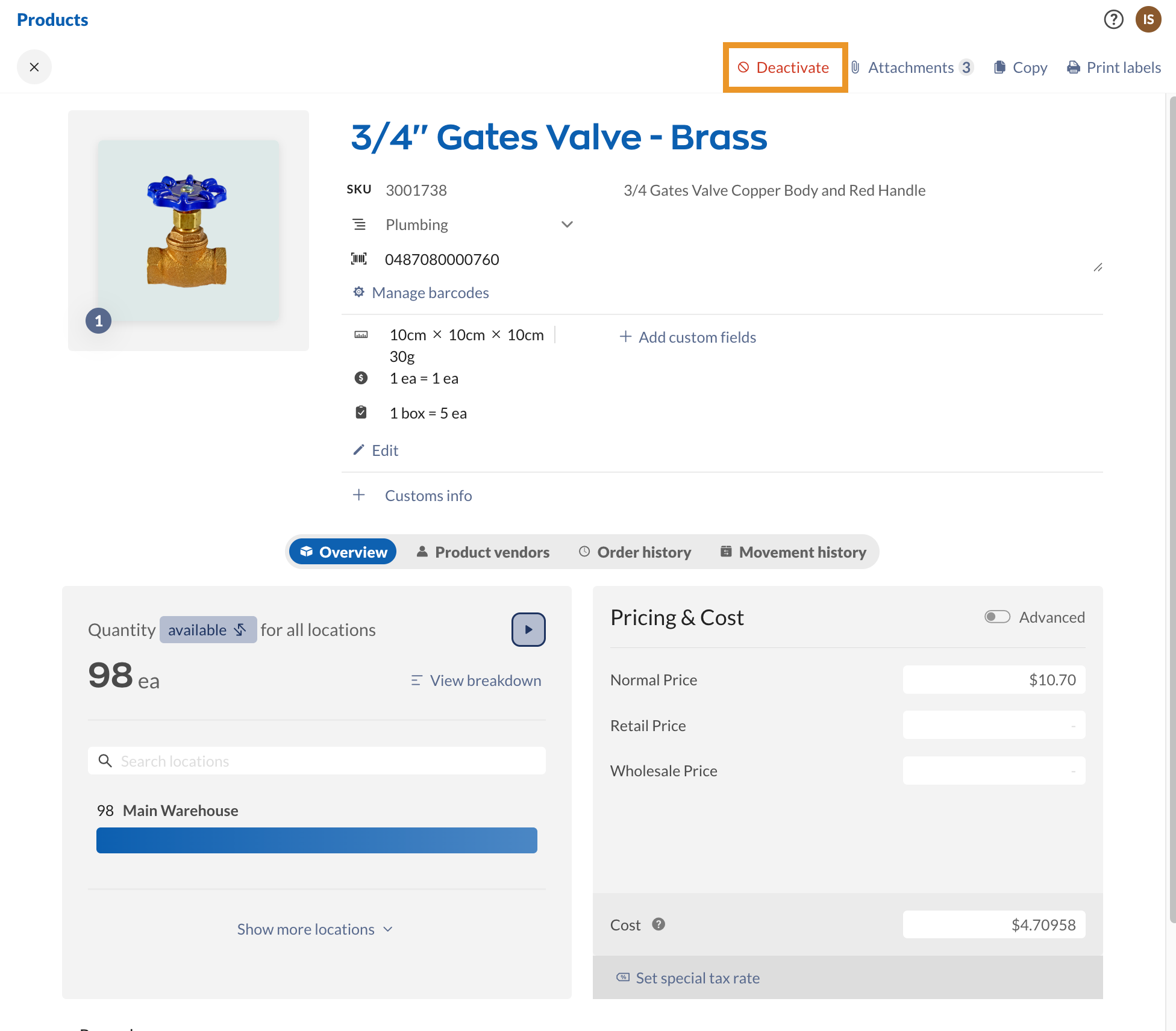 - Open the record (Product, Customer, or Vendor). If you need to recreate this as a new record, rename it before deactivating it. This is because inFlow does not accept duplicate names, regardless of whether the record is activated/deactivated.