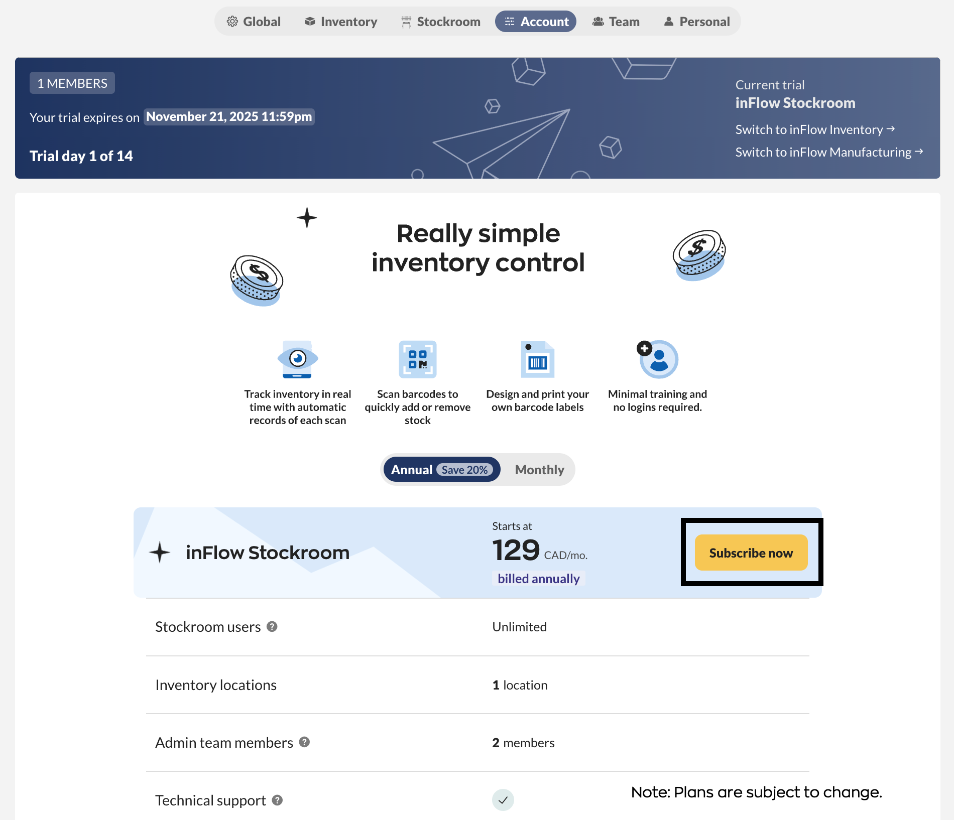 First, sign up for a free 14-day trial. We encourage you to explore the features and discover more about Stockroom to see if Stockroom is a good fit for your team.
