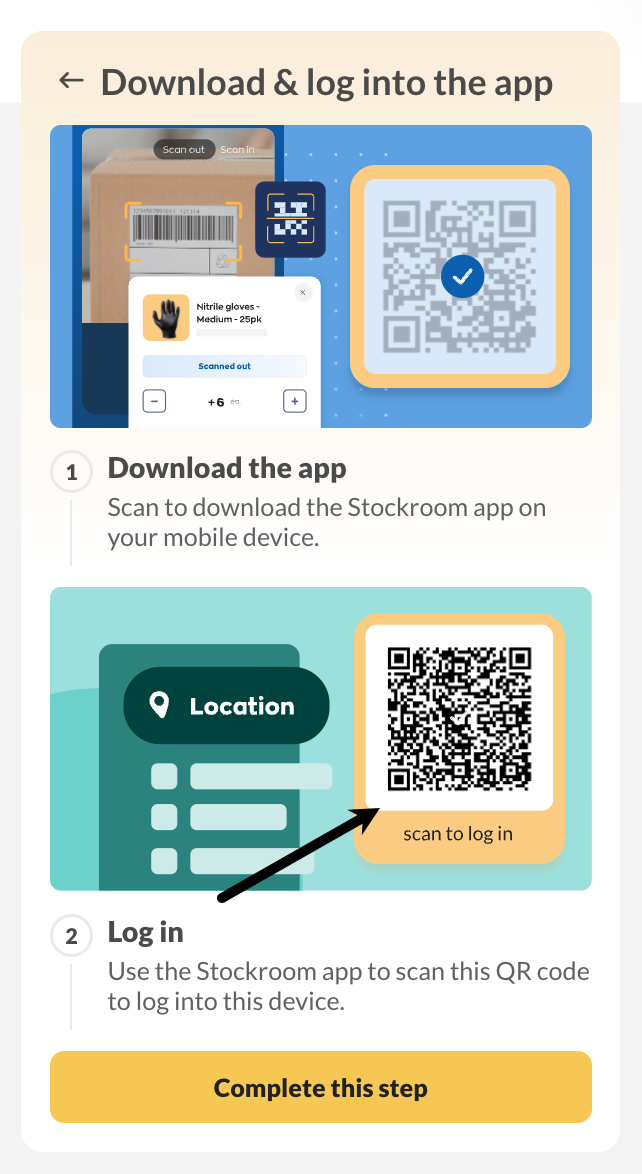 - In Stockroom for Web, click on Download & log into the app from the Setup checklist.