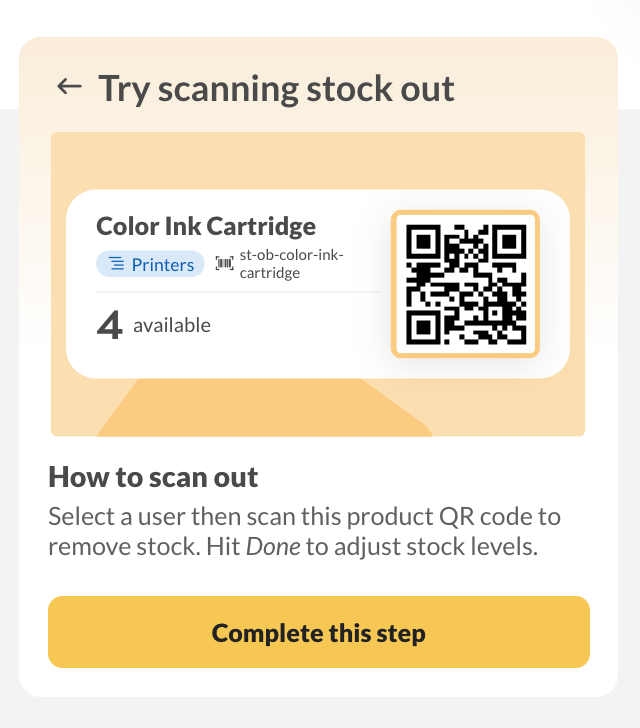- Go to the Stockroom for Web Homepage and click on Try scanning stock out from the Setup checklist.