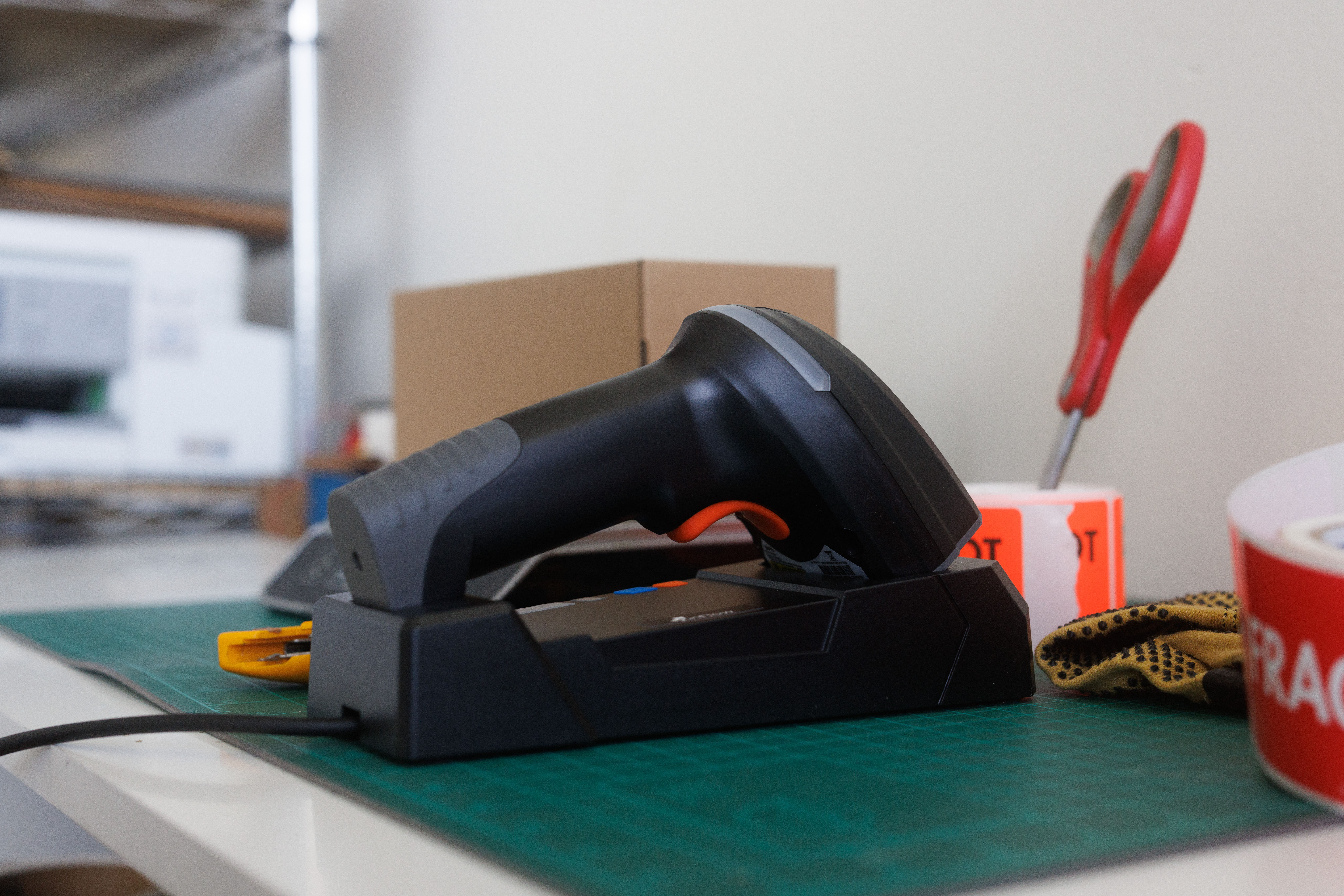 - Place the scanner into the cradle, and plug the USB cable into a computer or power supply.