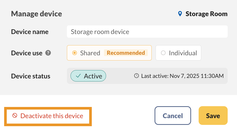 Users cannot be removed from the Stockroom app. Only inFlow Admins can edit the list of Stockroom users.