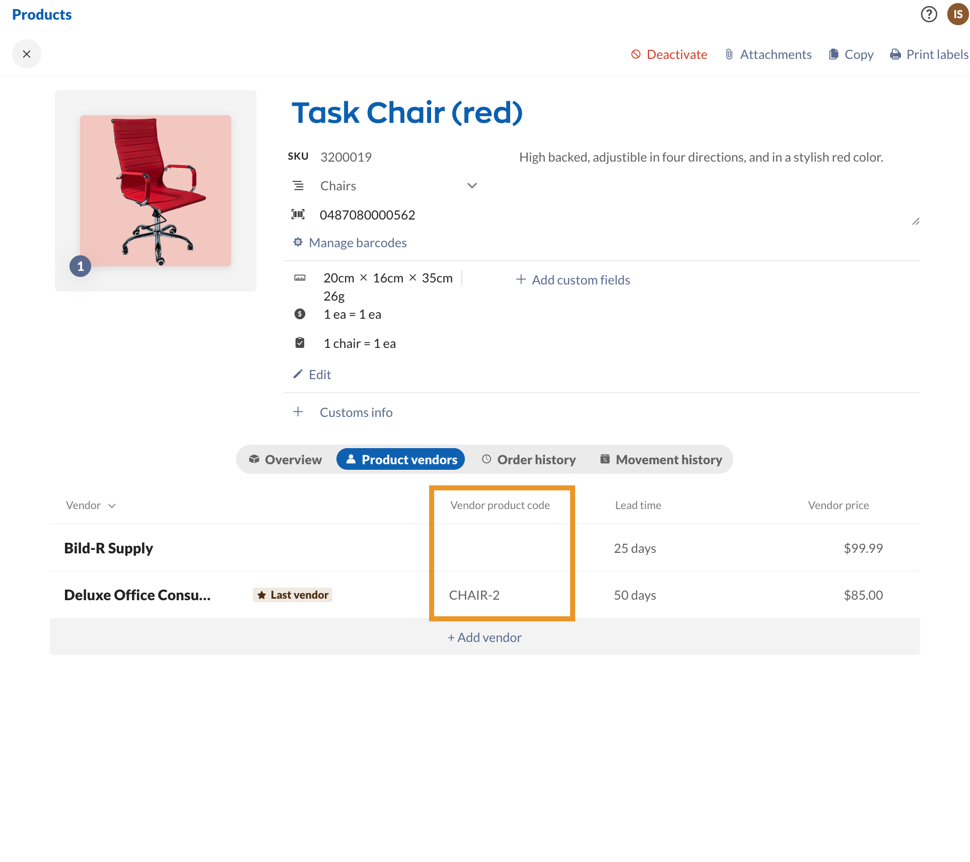 Sometimes, while you buy the same item from several vendors, they may not all use the same name. That’s where vendor codes come in.