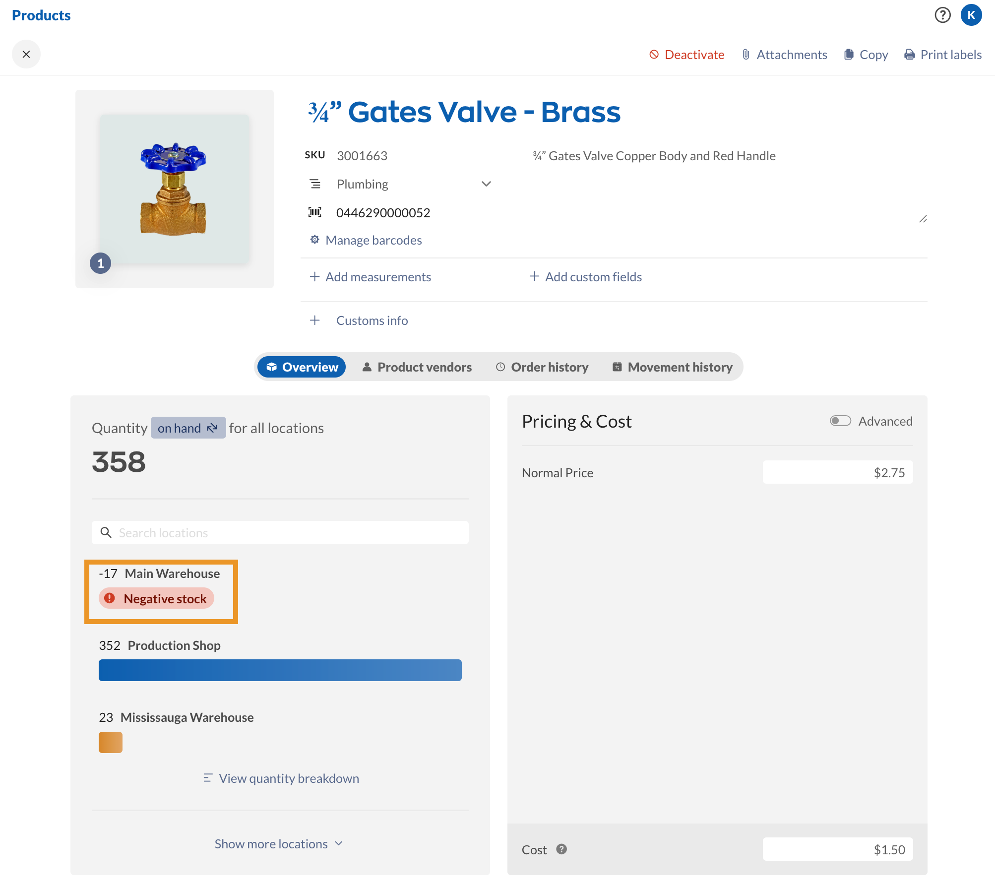 Negative inventory in inFlow occurs when a product’s quantity on hand is less than zero. (ex., a Quantity on hand of -17 at Location A). We recommend avoiding negative on-hand quantities wherever possible.